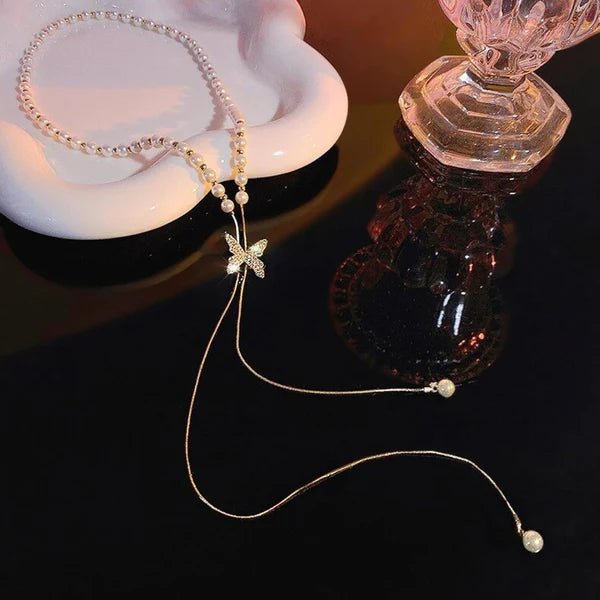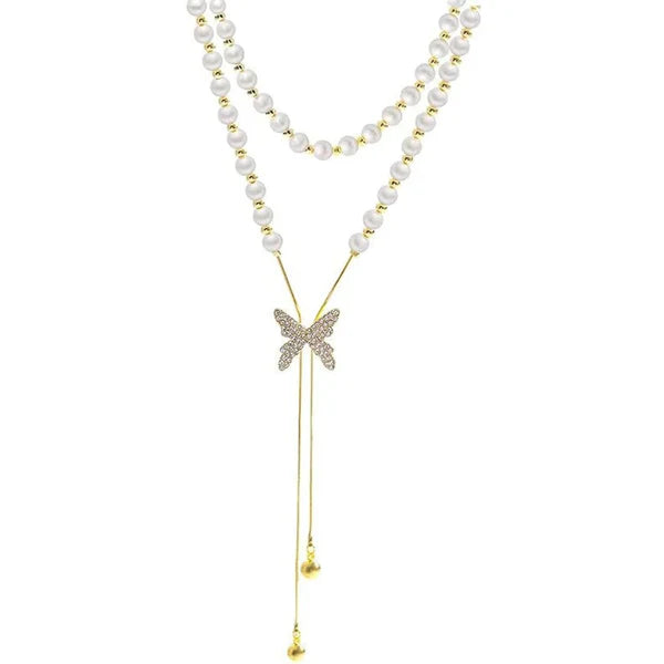 Pearl Necklace with Butterfly Pendant